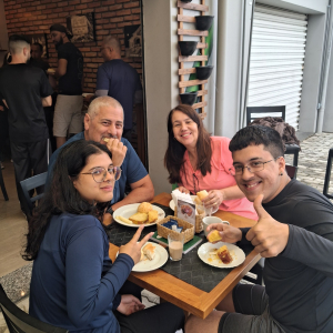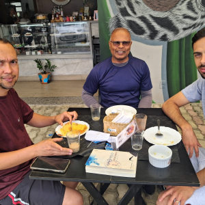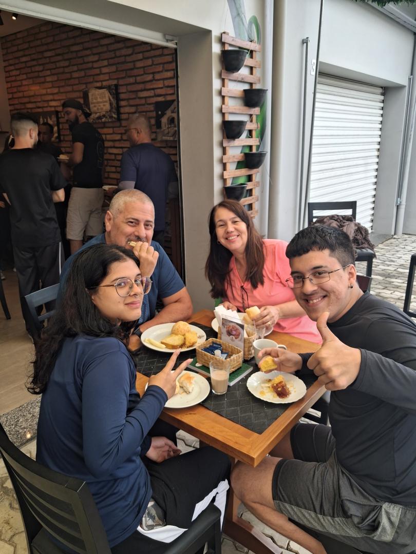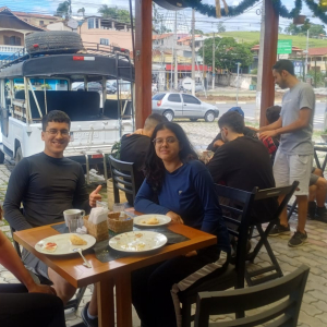 Seguimos para conhecer algumas das belas cachoeiras da região, onde a força da água e o cenário natural proporcionaram momentos de contemplação e descontração. O almoço foi em um restaurante histórico, que no passado funcionava como senzala entre os anos de 1820 e 1888. O espaço, carregado de memória, trouxe à tona reflexões sobre a história do Brasil e sobre como lugares podem guardar marcas profundas do tempo.